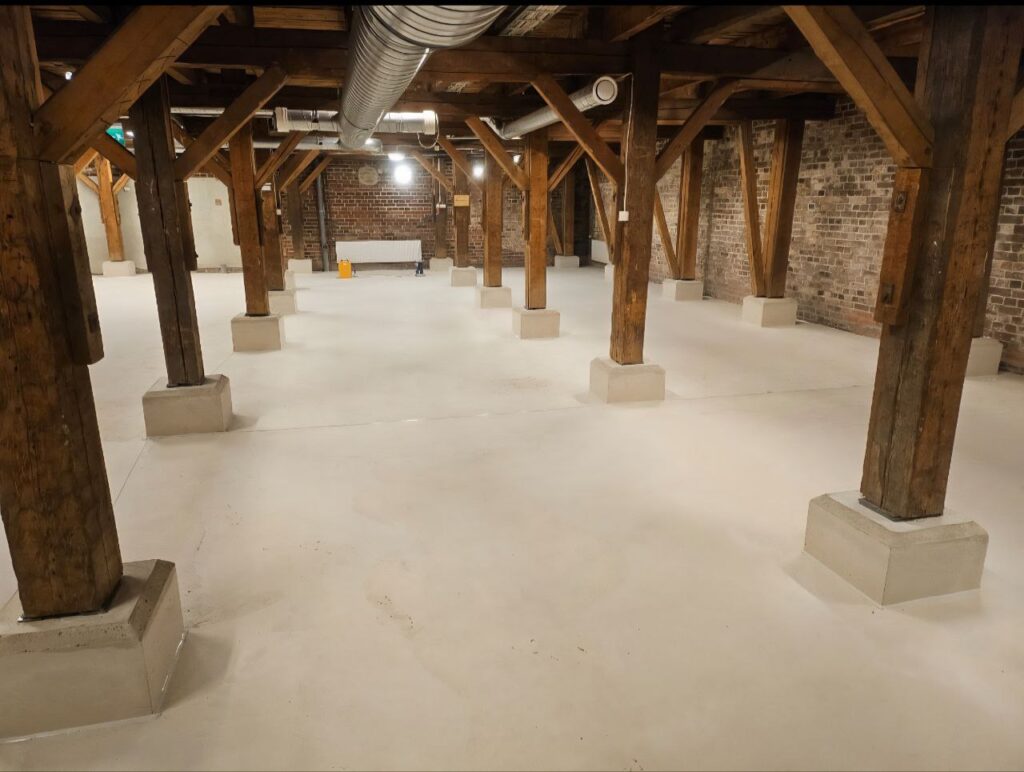 Uuden lattiarakenteen valmistumisen jälkeen toteutettiin sisätilojen elastisten saumojen ensisaumaus eri liitoskohdissa.