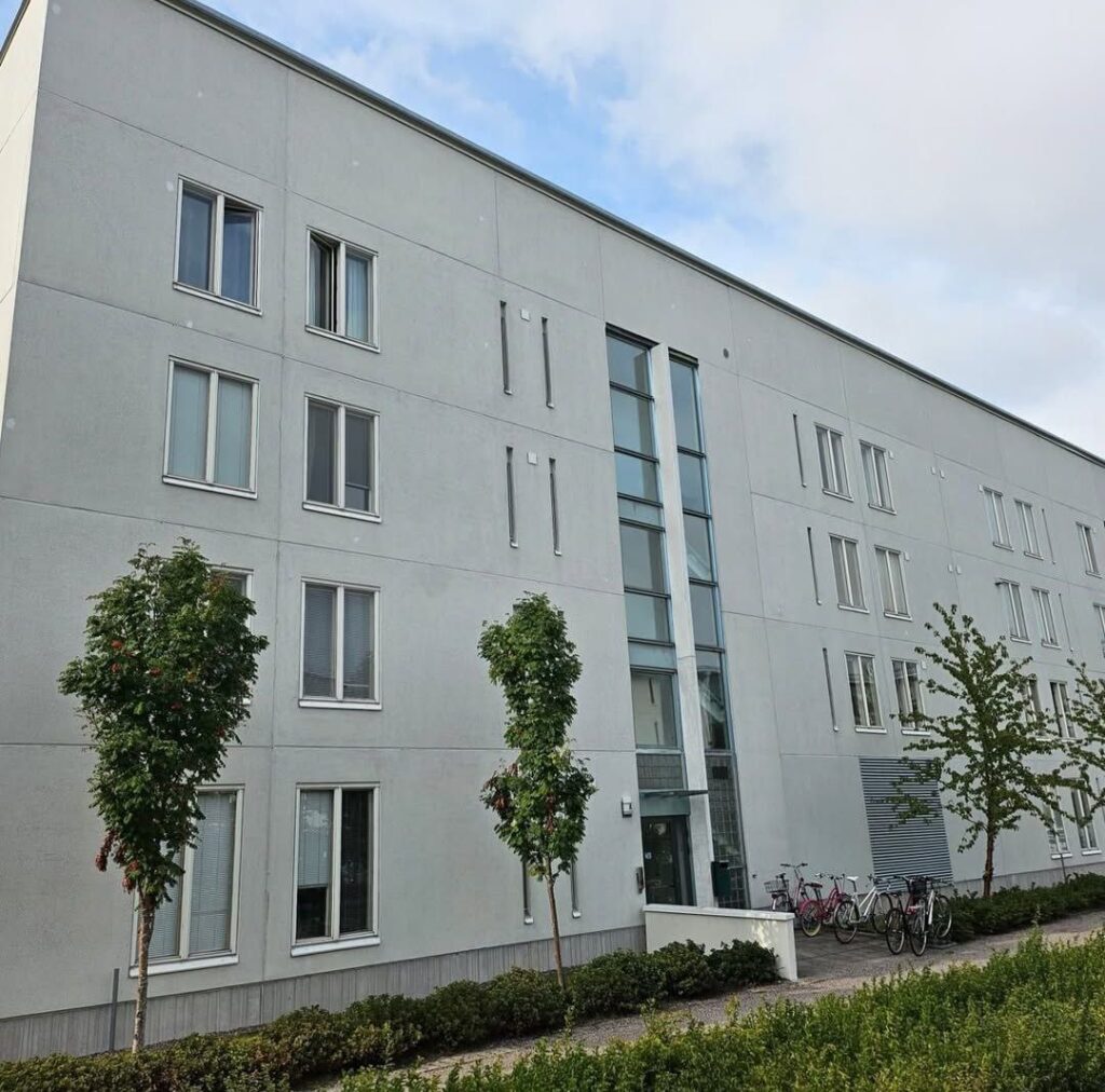 Rakennuksen kaikkien julkisivujen, ikkunoiden ja parvekkeiden elastisten saumojen uusintasaumaus.Saumaustöiden kokonaismäärä noin 2 000 jm.
